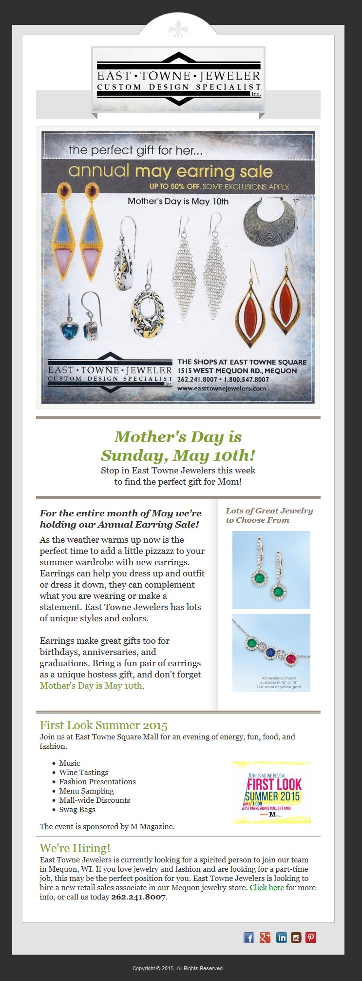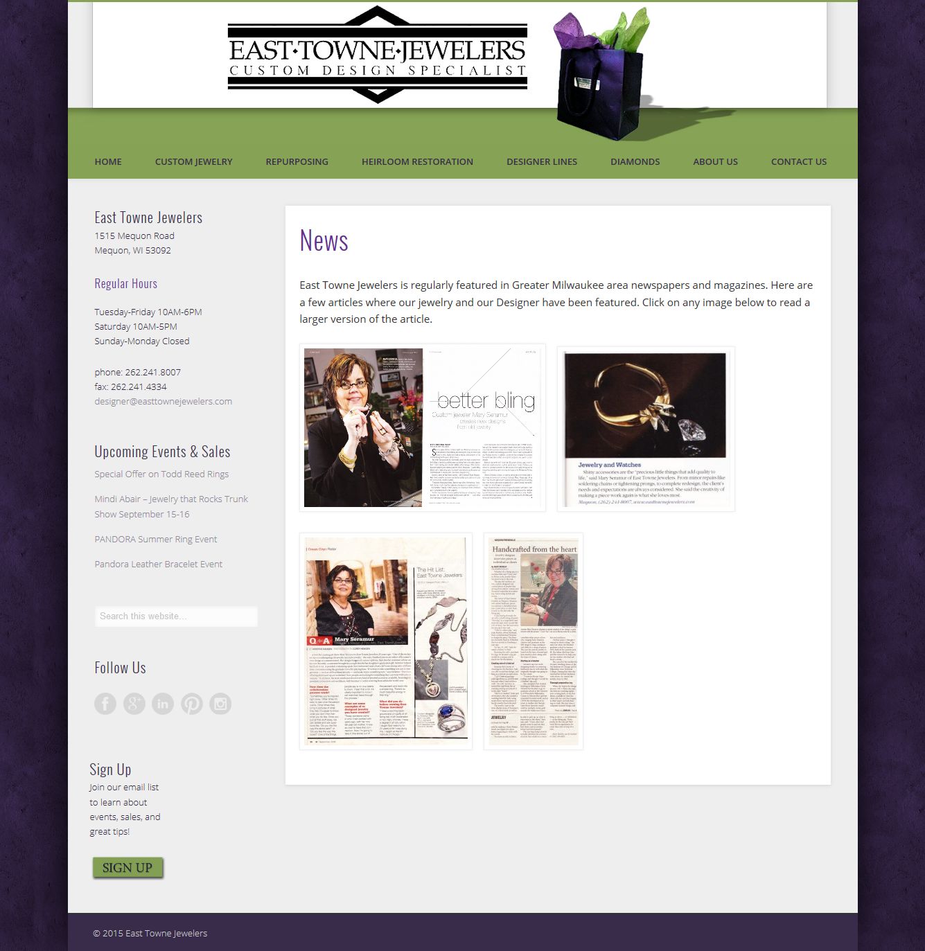 Through no fault of its own, the East Towne Jewelers website was a bit past its prime. It needed a little refresh: updated content, new functionality, lots of search engine optimization, and most of all an improved reflection of the ridiculously cool “bling” you can find at East Towne Jewelers—both in the jewelry cases and in the talented and creative mind of owner and designer Mary Seramur. Add a little social media and email marketing to the mix and you have an idea of the work we do together.
